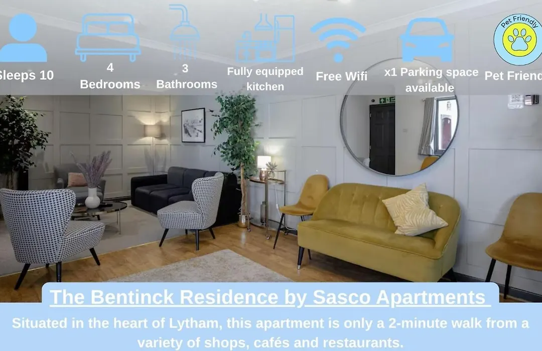 De 2-slaapkamer Bentinck Residence By Sasco Apartments, Lytham St Annes bevindt zich op ongeveer 5 minuten met de auto van Southport and St Anne's lifeboats disaster en is van alle gemakken voorzien, zoals draadloos internet en parkeerplaatsen.